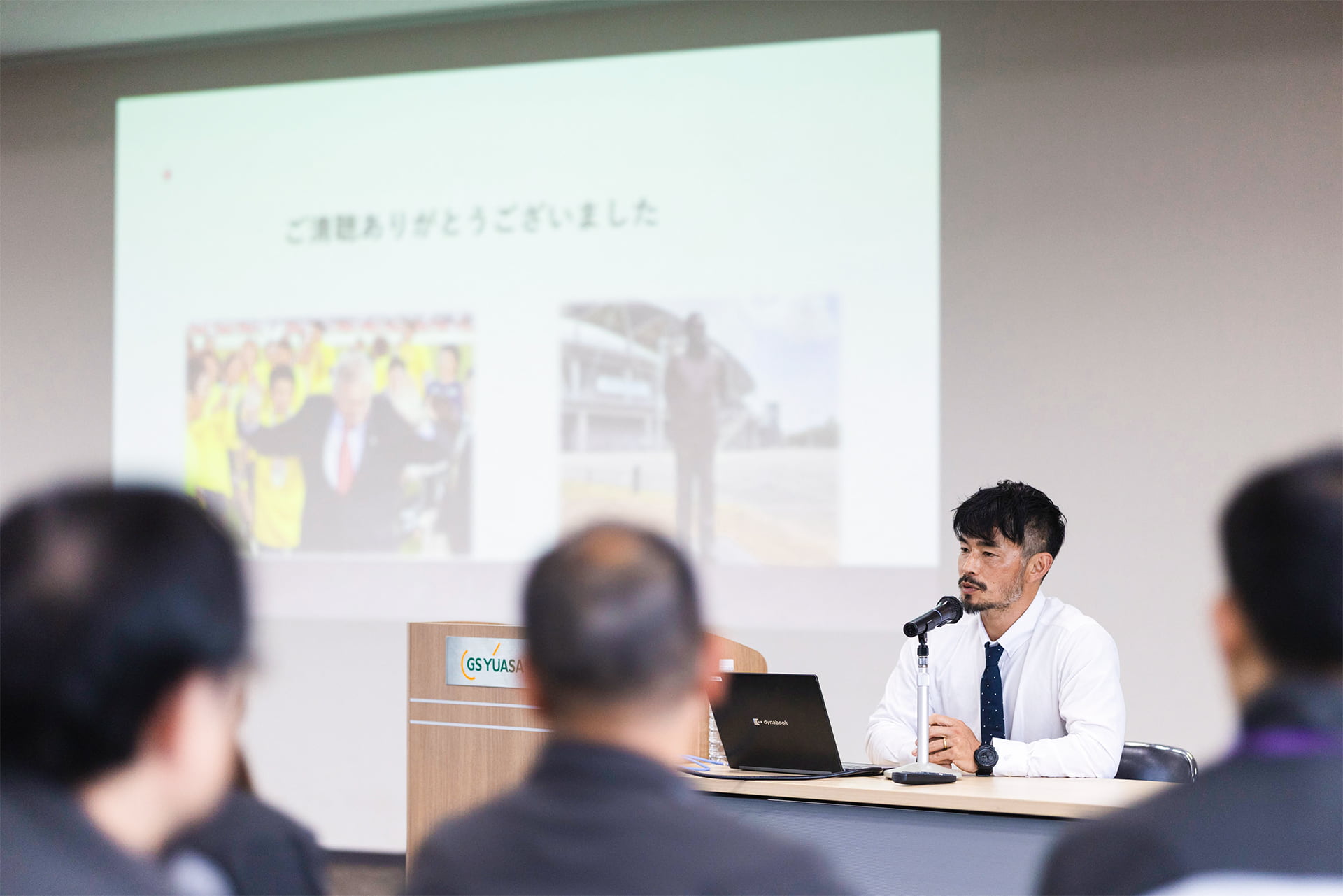 式典後の講演会では、元プロサッカー選手で現在はジェフユナイテッド市原・千葉(以下ジェフ)のクラブアンバサダーとして活躍する佐藤勇人氏をお招きし、